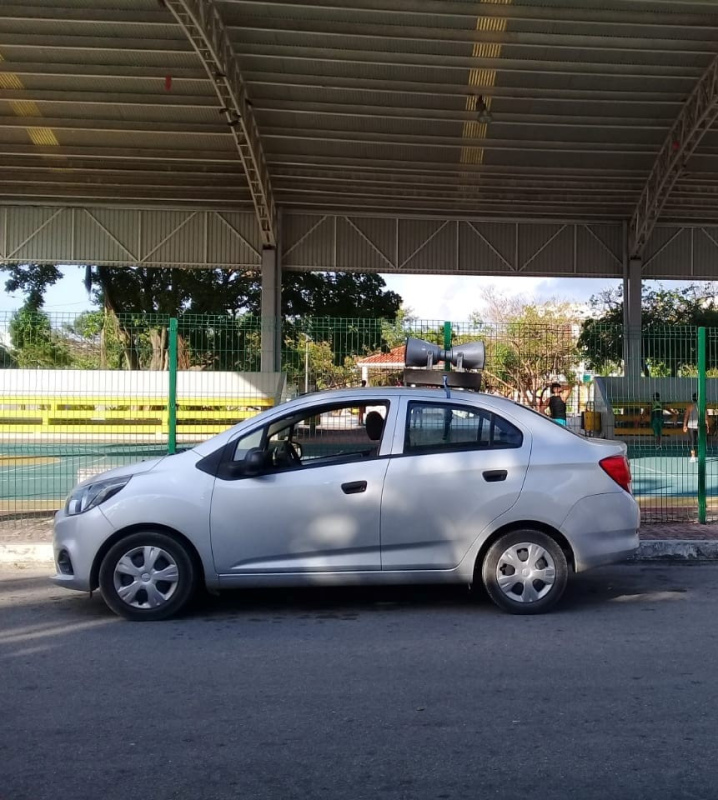 Carro de sonido recorriendo zonas específicas de Playa del Carmen.
